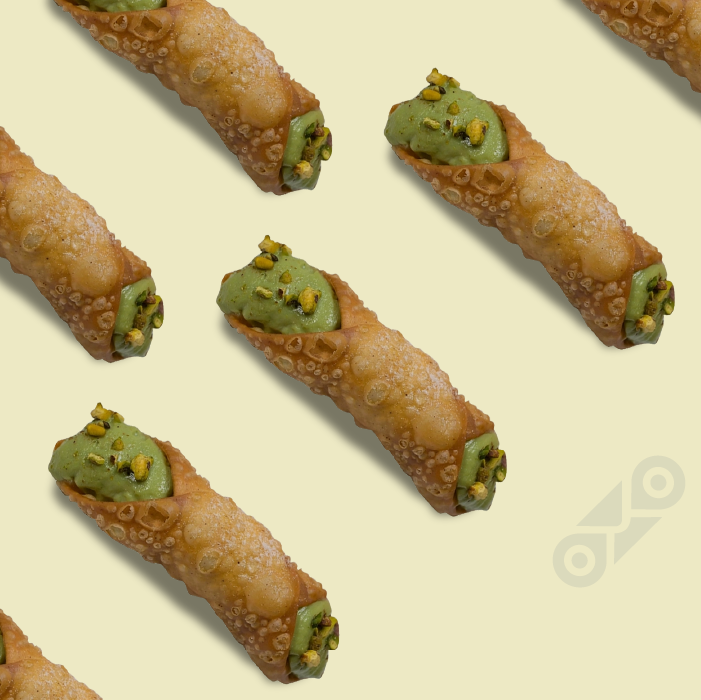 Crunchy cannoli shells embrace velvety pistachio cream - stone-ground pistachios blended with ricotta. Finished with crushed pistachio nuts sprinkle