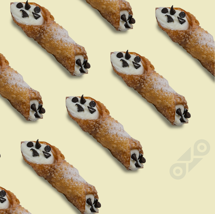Timeless perfection: Crispy golden cannoli shell filled with sweet ricotta, chocolate chips and candied orange, dusted with powdered sugar.