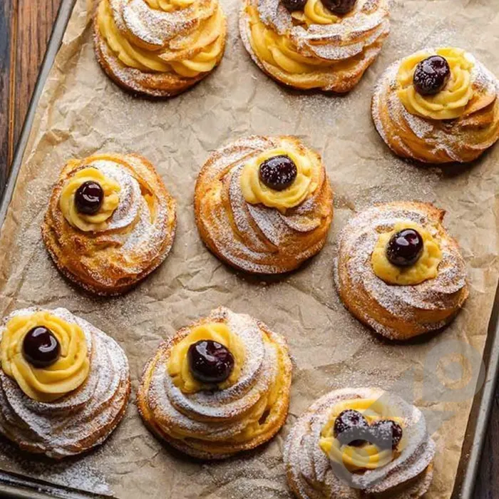 Choux Pastry, Lemon Pastry Cream, Candied Lemon Zest.